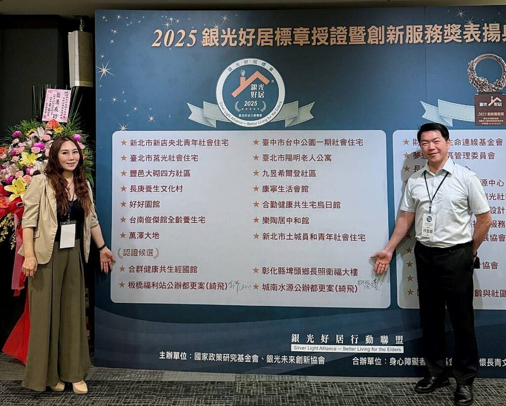 為了因應國內快速邁入超高齡社會,財團法人國家政策研究基金會及社團法人銀光未來創新協會推廣銀光好居認證制度,並於今(114)年6月26日「銀光好居標章授證暨創新服務獎表揚典禮」公開授獎。在高齡社會與永續城市的交會點,綺飛創意整合行銷協助規劃的中華工程兩大重要開發案「城南水源都更案」與「板橋福利站都更案」,雙雙獲選為今年「銀光好居認證」候選人,獲得產官學界高度肯定。